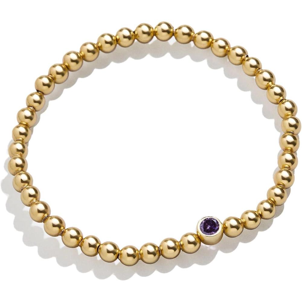 BaubleBar 18K Gold Birthstone Pisa Stretch Bracelet with Cubic Zirconia Stones for Women, Gold Plated Sterling Silver(Light Amethyst-Colored)