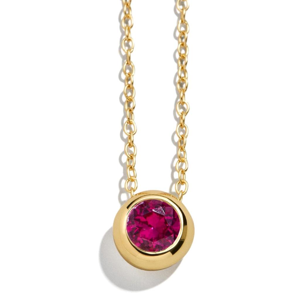 BaubleBar 18K Gold-Plated Sterling Silver Birthstone Pendant Necklace(Ruby-Colored)