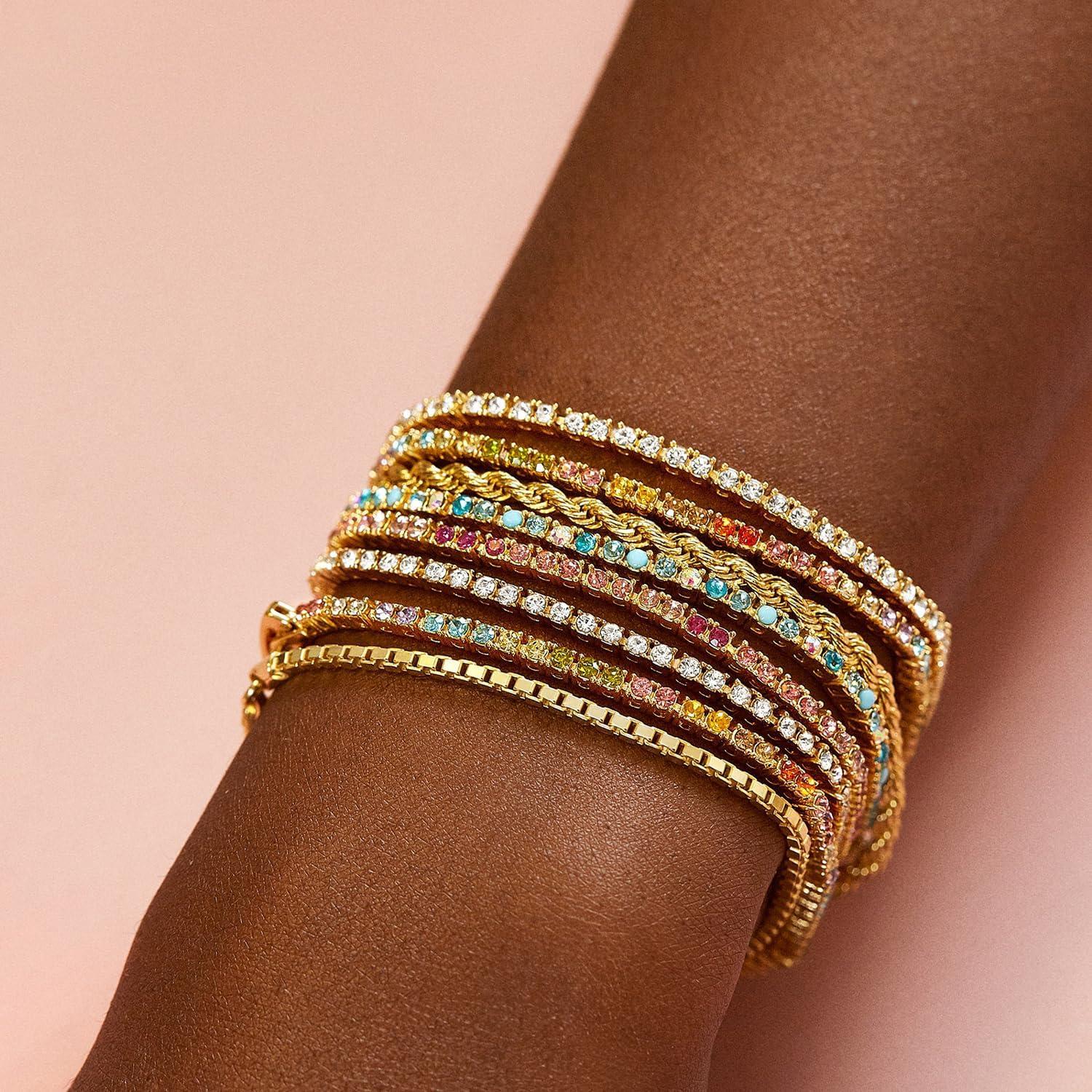 BaubleBar Bennett Tennis Bracelet for Women, Gold-Plated Brass – Hypoallergenic W/Cubic Zirconia Stones(Gold)
