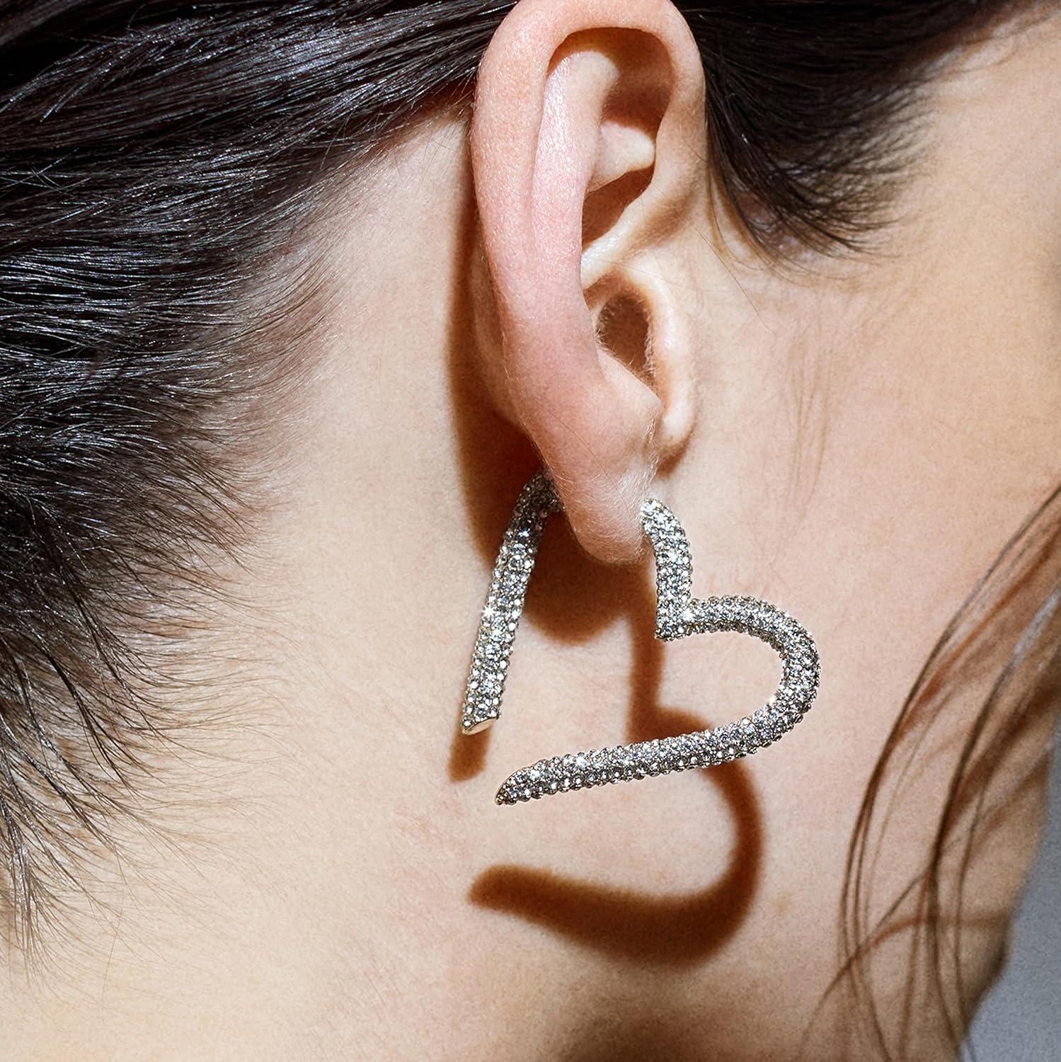 BaubleBar Heart Earrings Collection for Women, Gold Plated Hypoallergenic Fashion Jewelry(Emory Hoop – Clear/Gold)