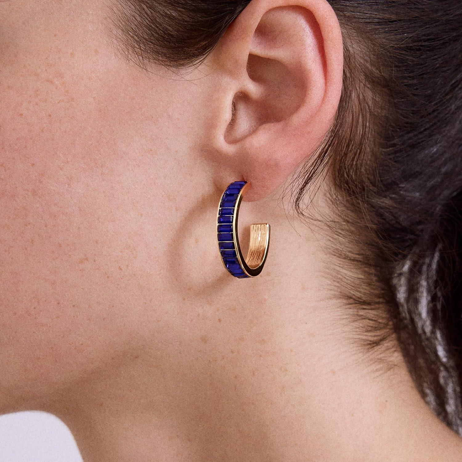 BaubleBar Hoop Earrings for Women, Fashion Jewelry, Beautiful and Giftable Earrings(Dark Blue (Huggie))