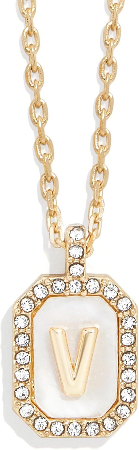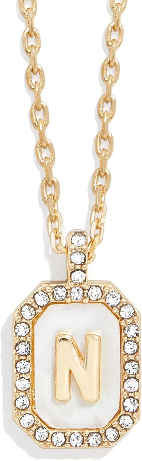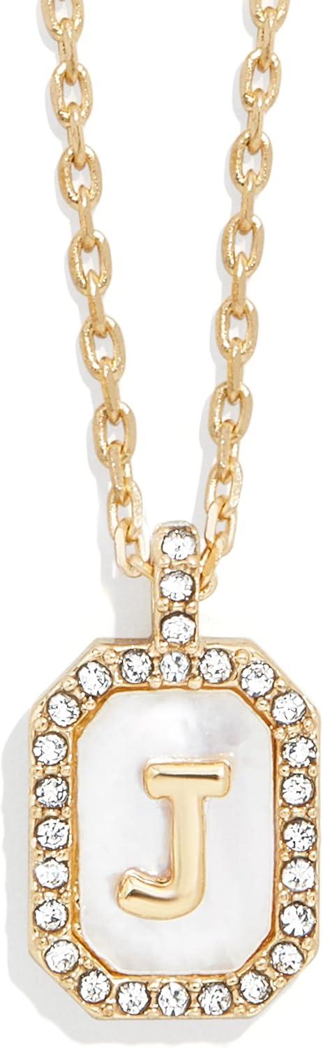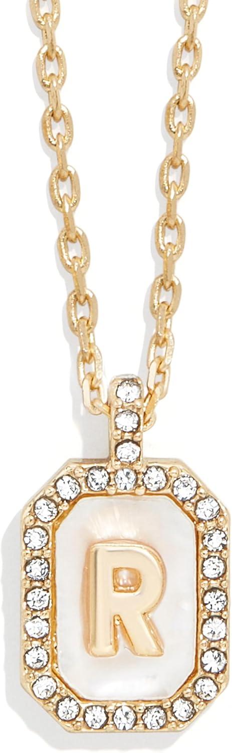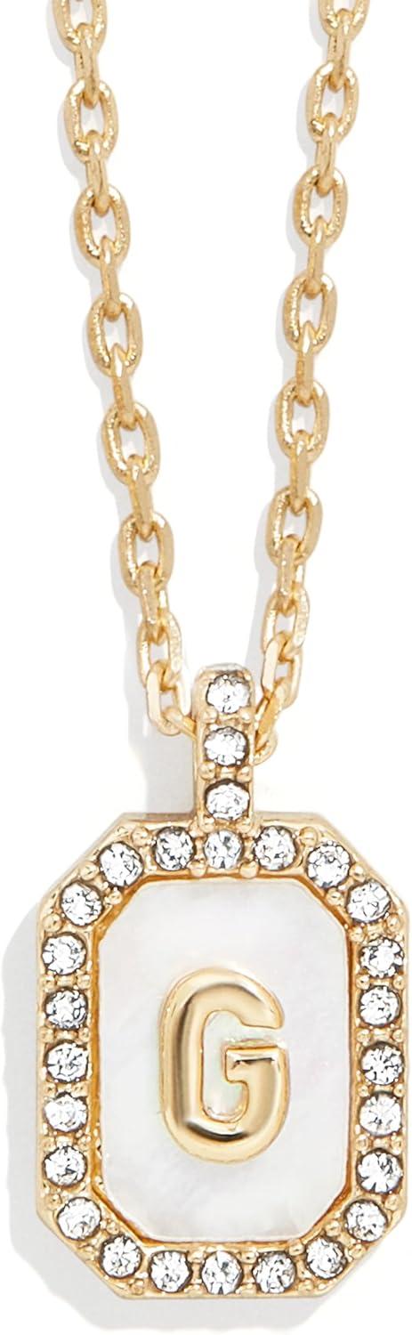 BaubleBar Initial Necklace – Dainty Gold-Plated Personalized Letter Pendant Necklace, Small Dog Tag Style Design(Mother of Pearl)
