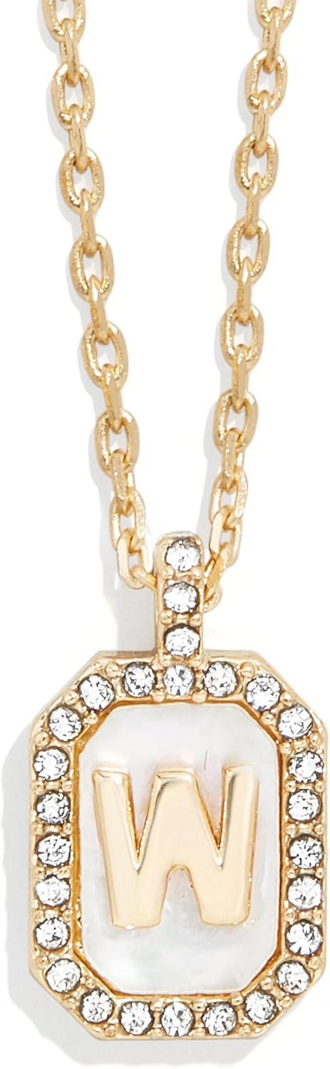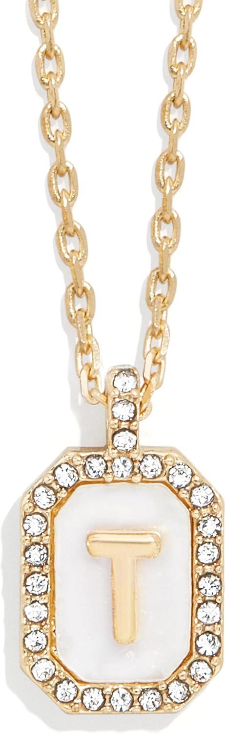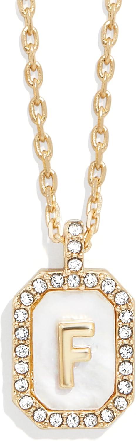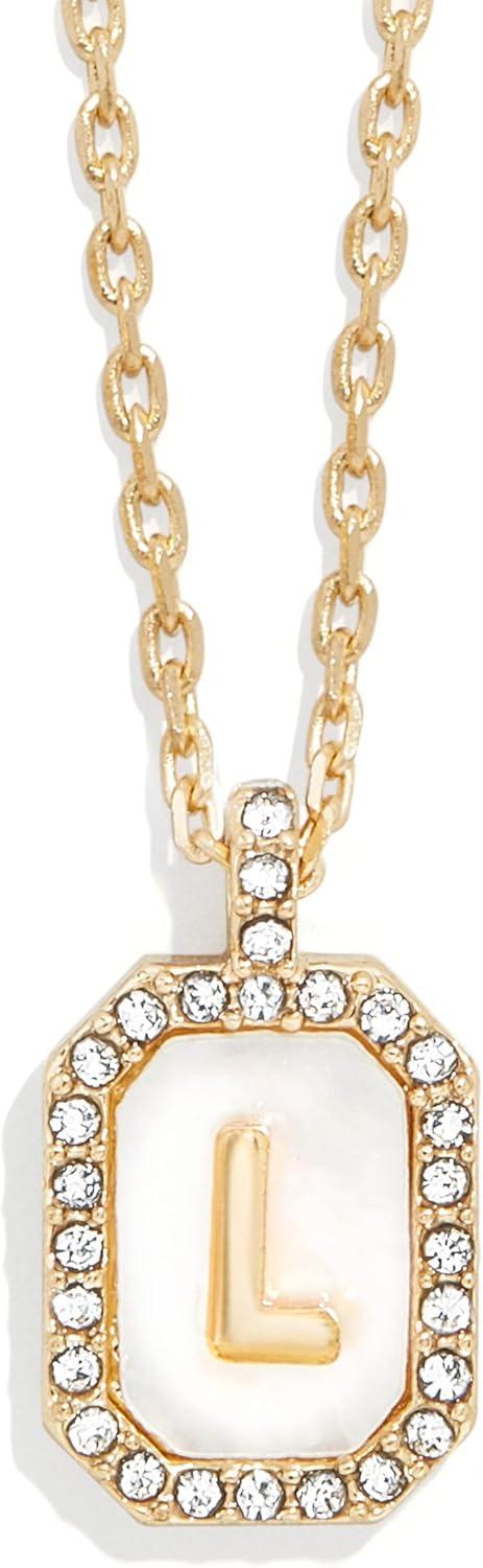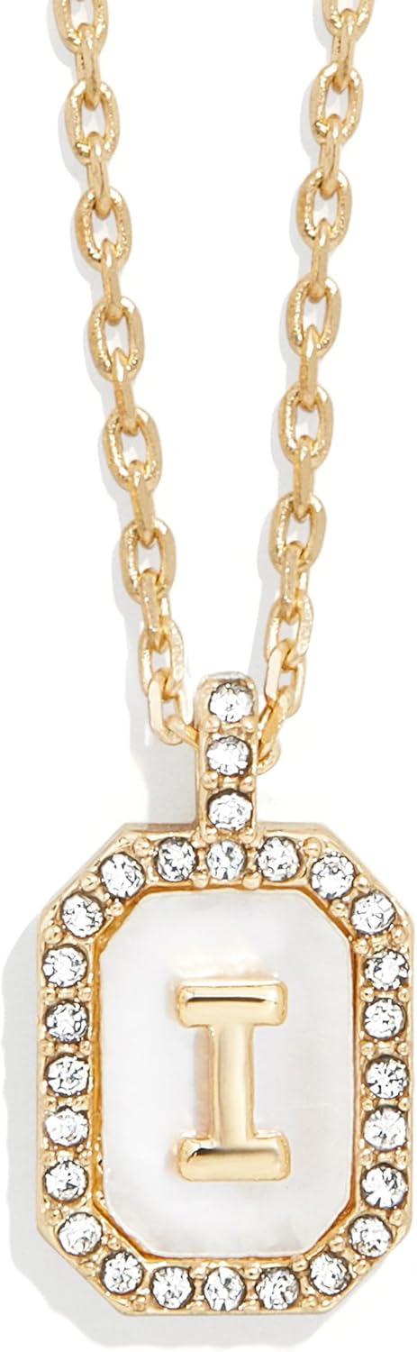 BaubleBar Initial Necklace – Dainty Gold-Plated Personalized Letter Pendant Necklace, Small Dog Tag Style Design(Mother of Pearl)