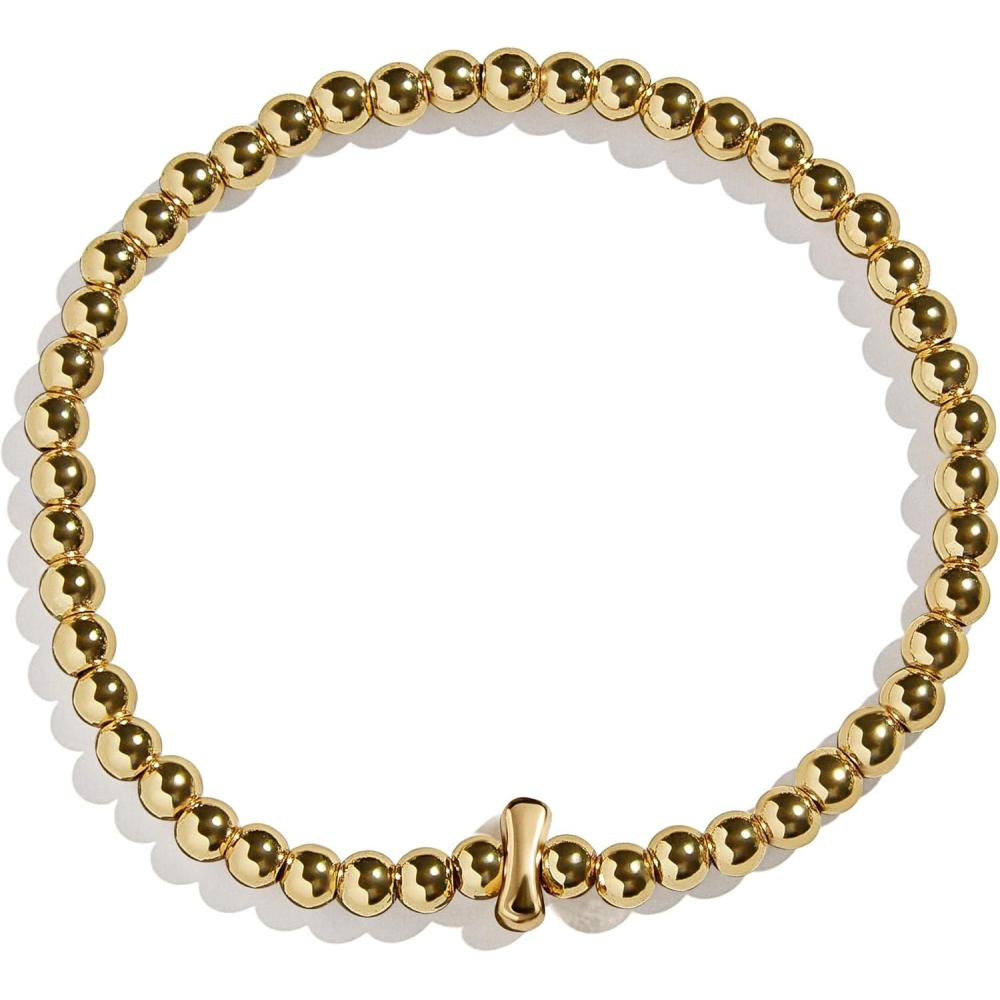 BaubleBar Initial Pisa Stretch Bracelet – Personalized Gold-Plated Bracelet for Women, Beaded Initial Bracelet, Stacking Bracelet, Custom Ball Bracelet, Trendy Jewelry(Letter I (Solid))