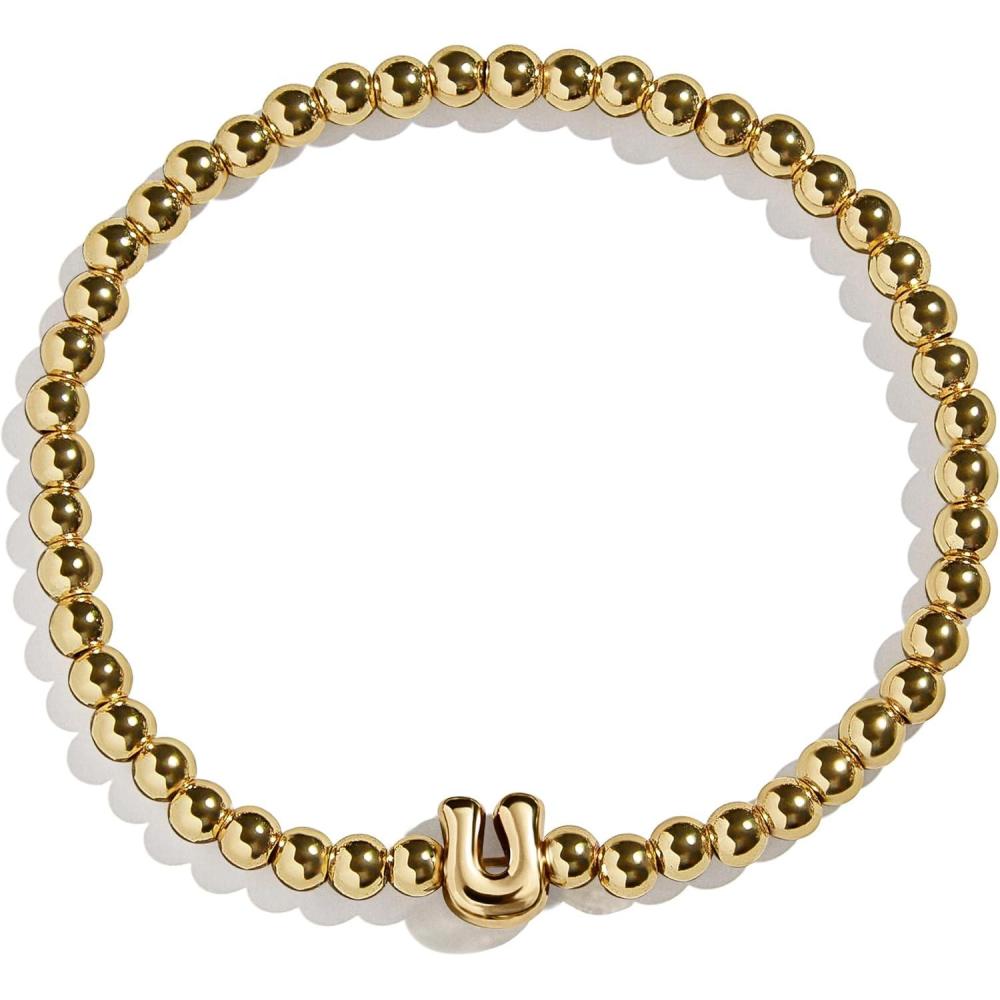 BaubleBar Initial Pisa Stretch Bracelet – Personalized Gold-Plated Bracelet for Women, Beaded Initial Bracelet, Stacking Bracelet, Custom Ball Bracelet, Trendy Jewelry(Letter U (Solid))