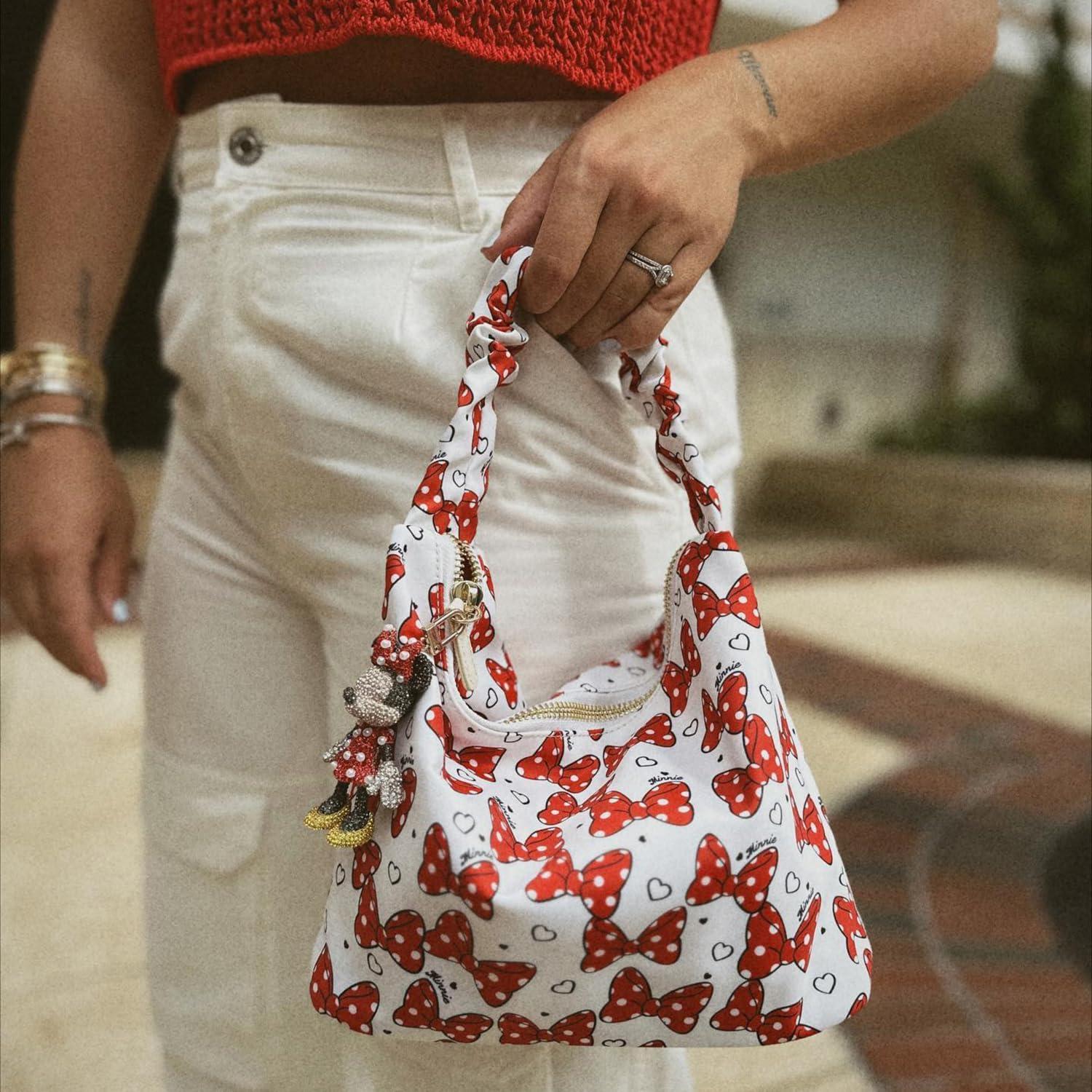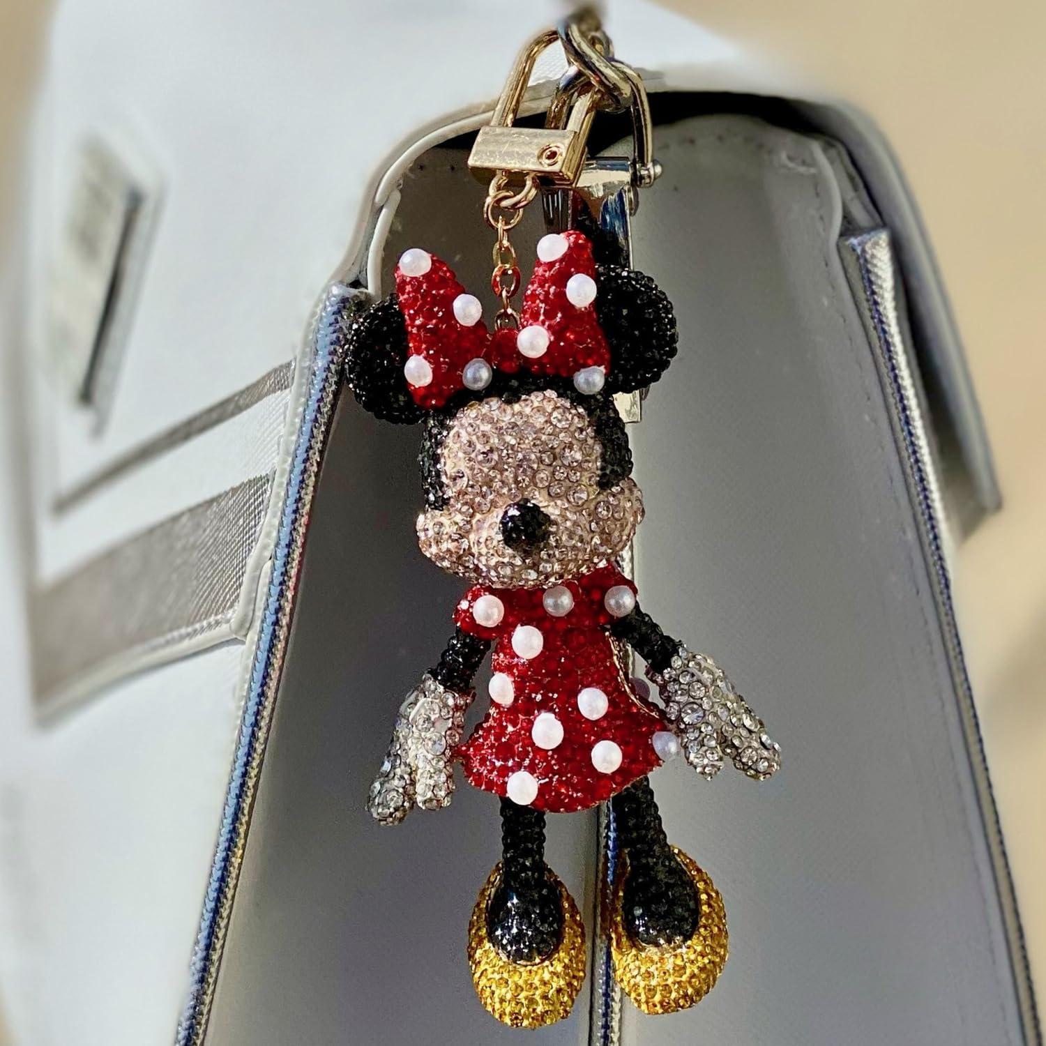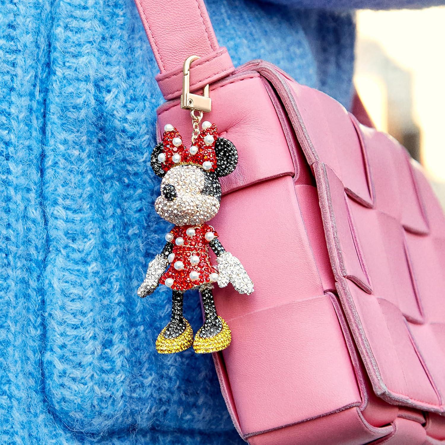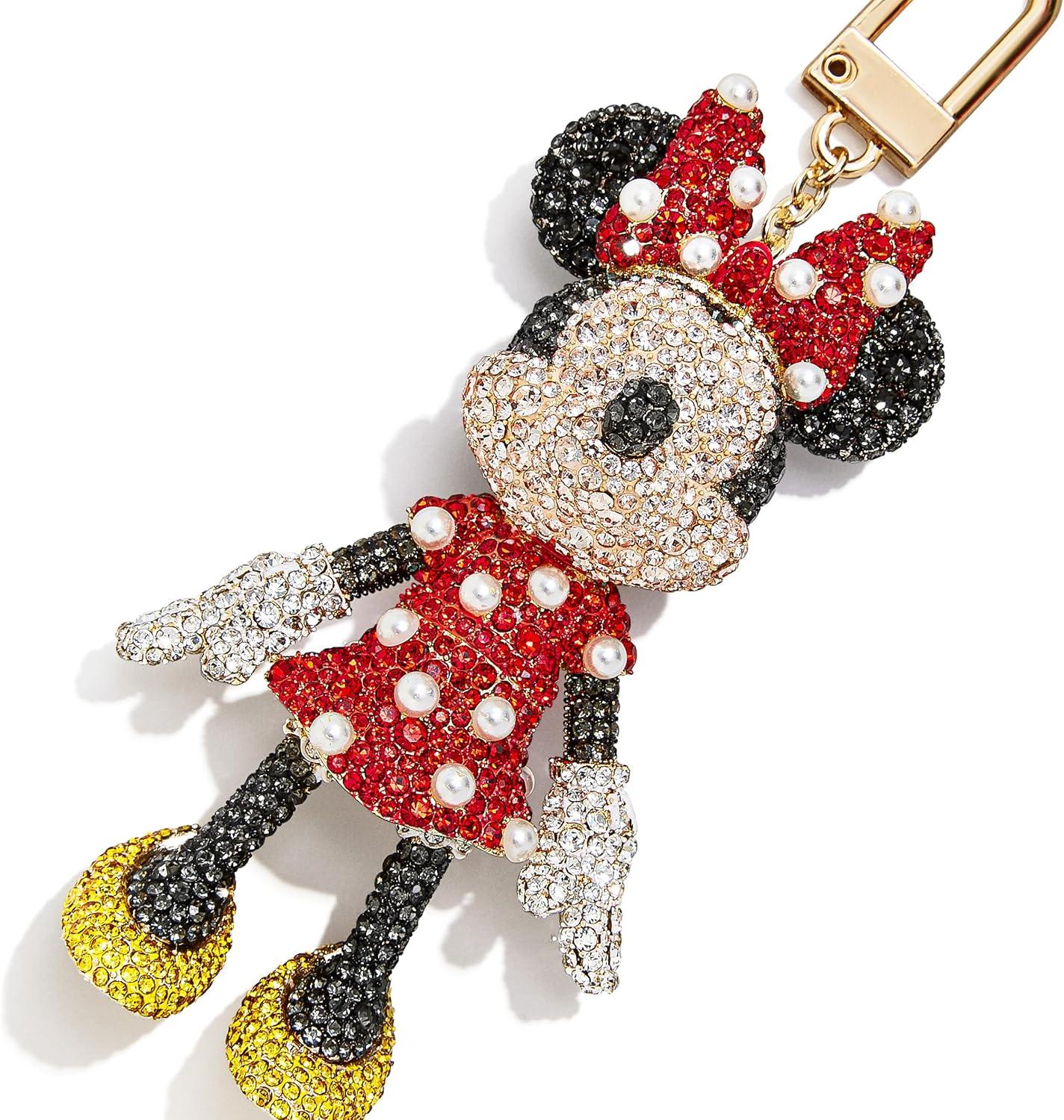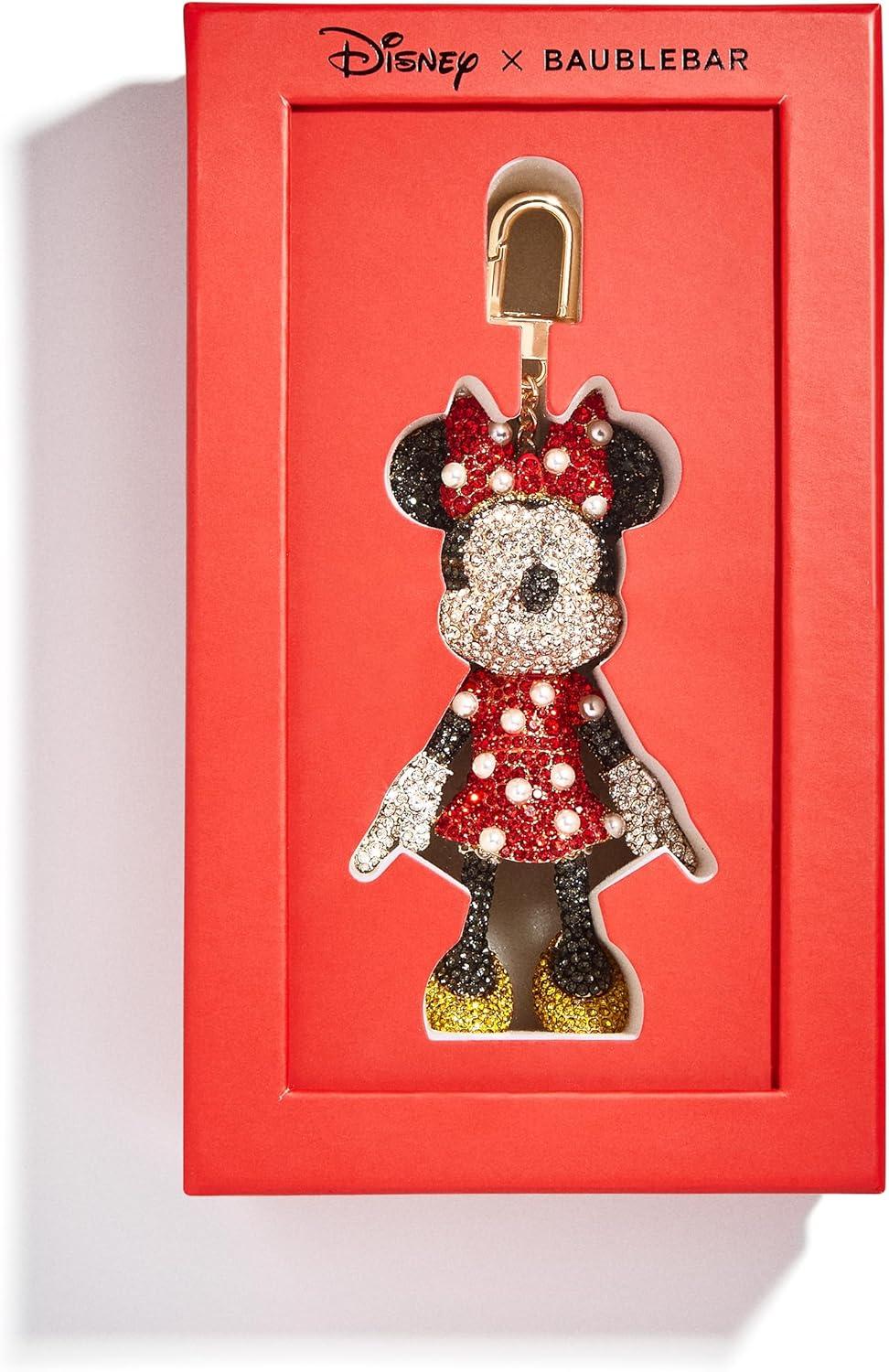 BaubleBar Licensed 3D Bag Charms for All Ages – Cute Character Keychains to Display on Backpacks and Purses(Pavé – Minnie Mouse)