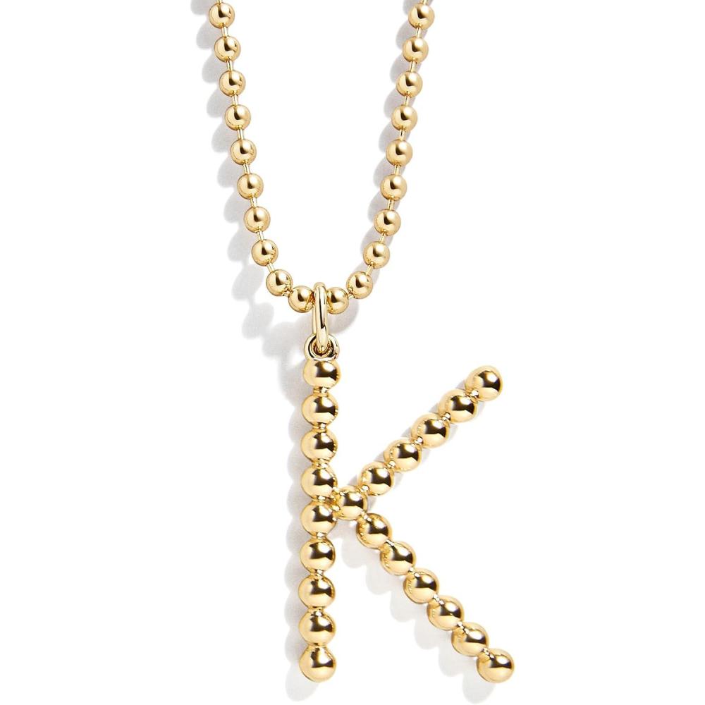 BaubleBar Oversized Initial Pisa Necklace for Women, Gold-Plated Beaded Necklace, Perfect Personalized Gift(K)