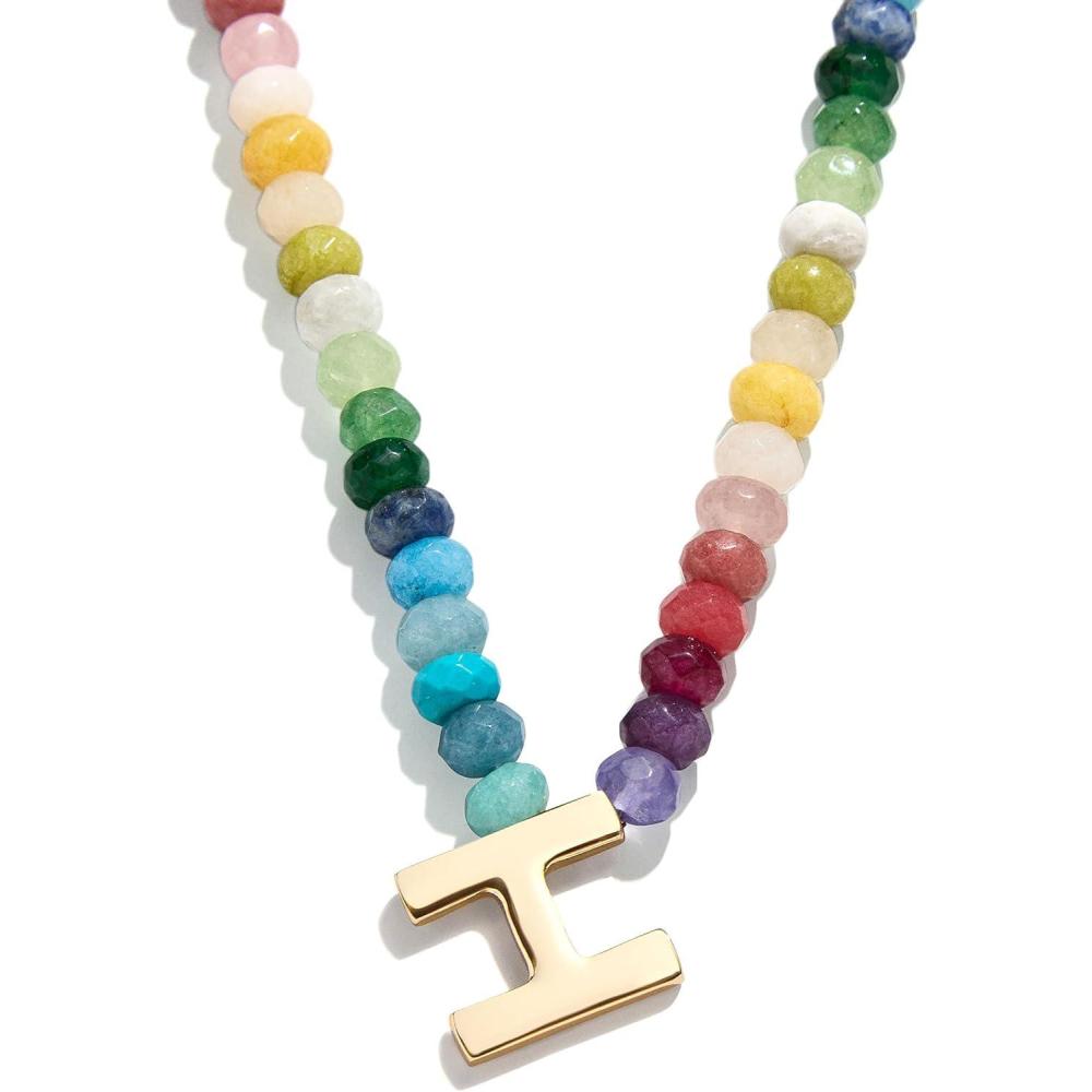BaubleBar Semi-Precious Block Initial Necklace for Women – Colorful Personalized Necklaces, Custom Pendant Necklace w/Natural Gemstones, Beaded Necklace, Fashion Jewelry(H)