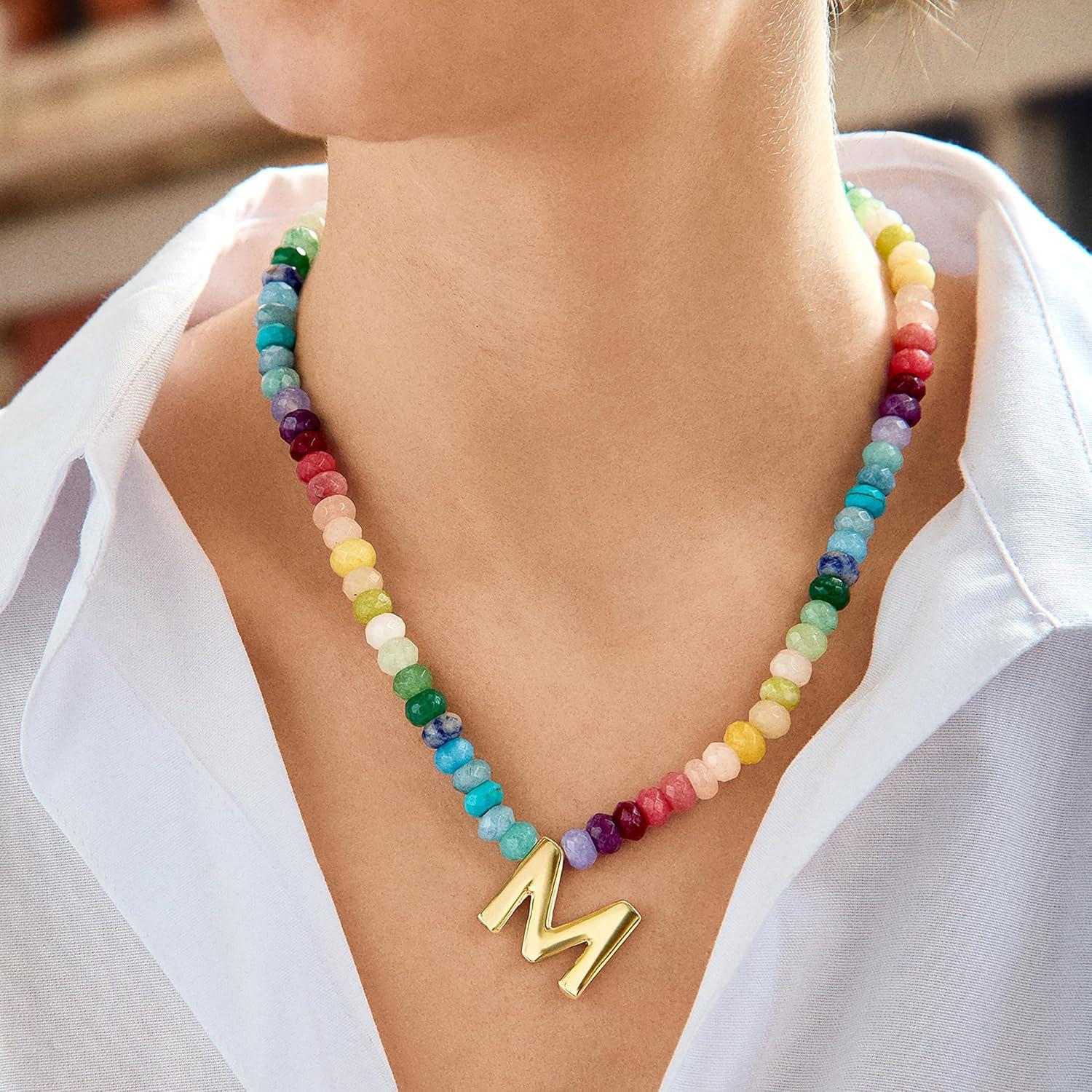 BaubleBar Semi-Precious Block Initial Necklace for Women – Colorful Personalized Necklaces, Custom Pendant Necklace w/Natural Gemstones, Beaded Necklace, Fashion Jewelry(N)