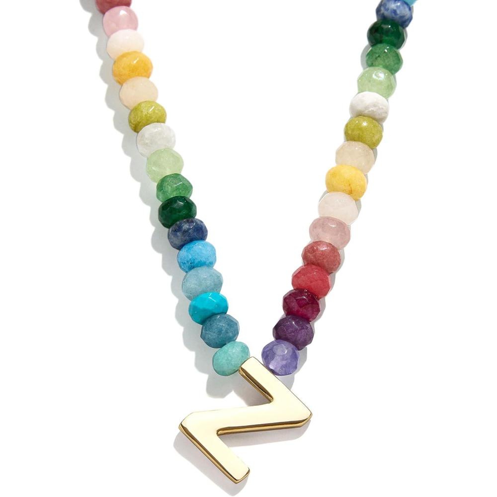 BaubleBar Semi-Precious Block Initial Necklace for Women – Colorful Personalized Necklaces, Custom Pendant Necklace w/Natural Gemstones, Beaded Necklace, Fashion Jewelry(Z)